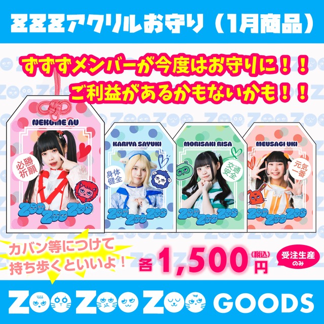 【ZooZooZoo月間商品】 2026年1月のZooZooZoo月間商品はアクリルお守り。 受注生産商品のため必ず期間中にご購入ください。 お渡しは1月下旬~2月上旬予定です。 販売期間:1月1日~1月15日23:59