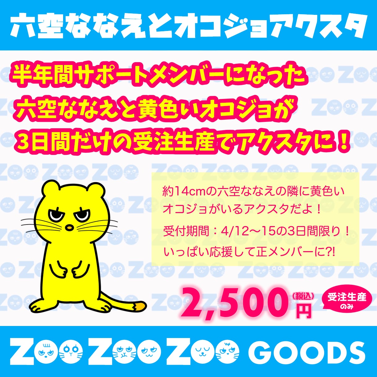 半年間のサポートメンバーになった六空ななえと黄色いオコジョのアクスタを受注生産で販売します!